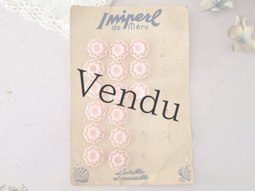 レトロで可愛らしいお花のような型抜きがされたピンクベージュのヴィンテージボタンです。
