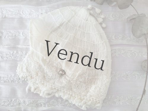 - > フランスヴィンテージ カットワーク刺繍のちいさなボネ