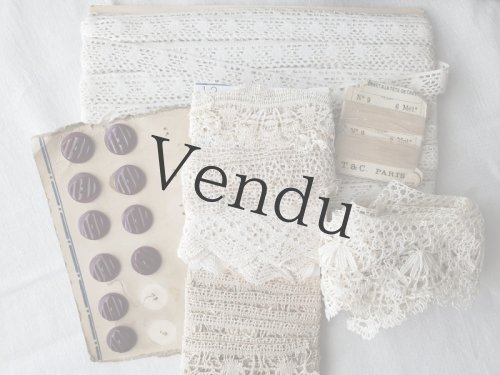 - > フランス蚤の市 端切れレースセット ボタンつき A