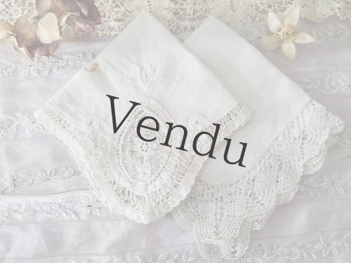 - > フランスアンティーク ノルマンディレース クッションカバー