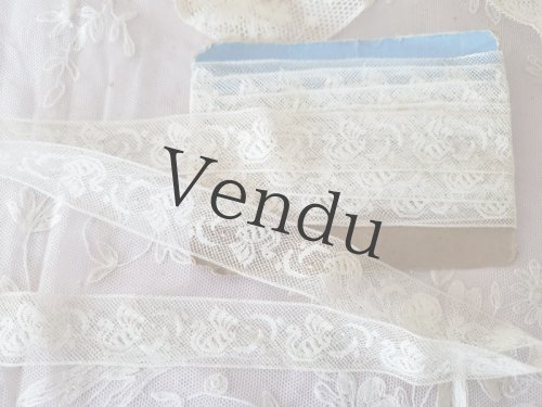- > フランスヴィンテージ 花の透かし白糸刺繍 端切れ 2枚