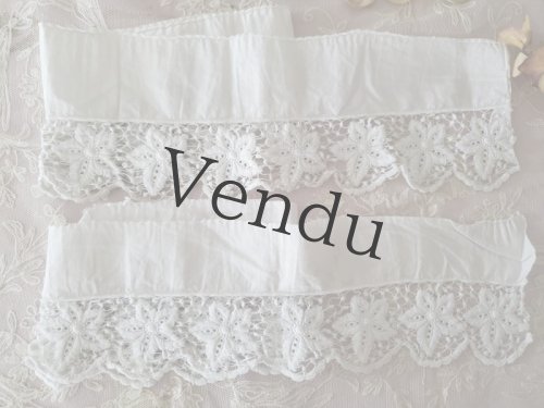 - > フランスアンティーク ボタニカル柄 白糸刺繍 スカラップレース 70cm