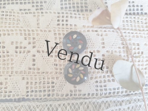 フランス 1940年代 お花ボタン カゼイン 黒 22mm