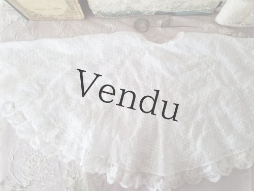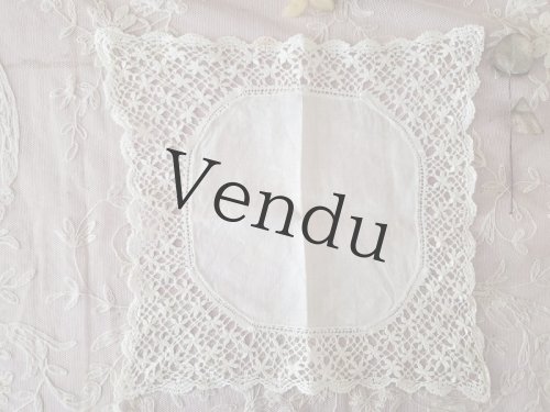 - > フランスヴィンテージ ボビンレース ハンカチ 名前刺繍入り
