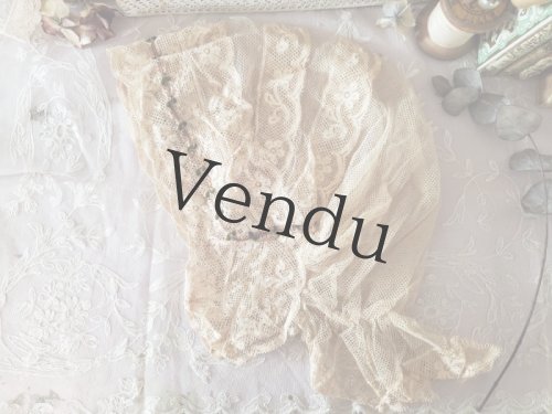 フランスアンティーク 白糸刺繍とリボンの小さなボネ