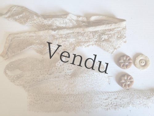 《Écru エクリュ》カラーのくたくたアンティークレースとボタンをセットにしました。