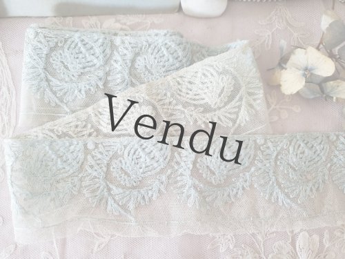 - > フランスアンティーク 白糸刺繍リボン/テープ 156cm