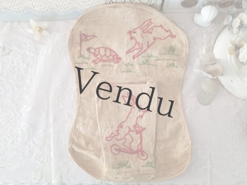 フランスヴィンテージ 赤糸刺繍のお裁縫ポーチ