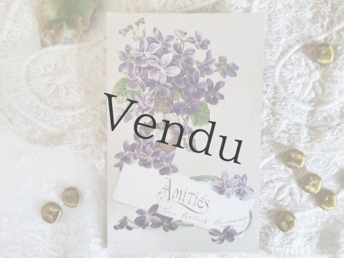 - > フランスアンティーク スミレの布花があしらわれたカニヴェ仕様ポストカード