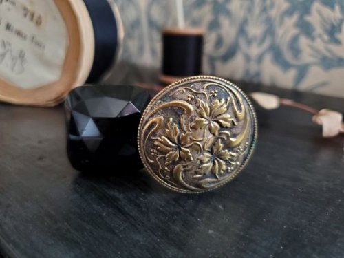 錆つきなどの目立つ劣化がありませんので、ベルベットやサテンリボンを通してベルトとして実用頂けます。