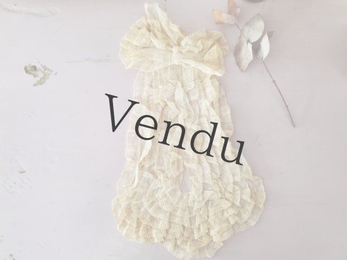 - > フランスアンティーク 円状 幅広 白糸刺繍スカラップレース 64(128)cm