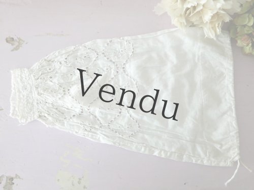 - > フランスアンティーク カットワーク刺繍のボネ 透かしローズ