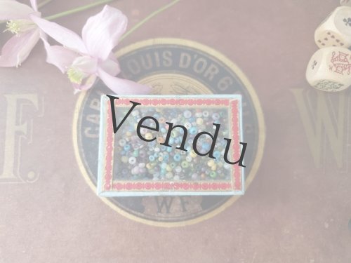 フランスアンティーク ガラスの蓋の紙箱入りビーズ ≪ラベンダー≫