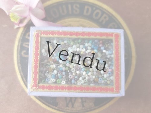 フランスアンティーク ガラスの蓋の紙箱入りビーズ ≪水色≫