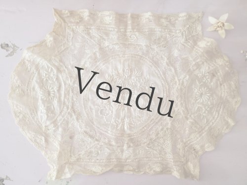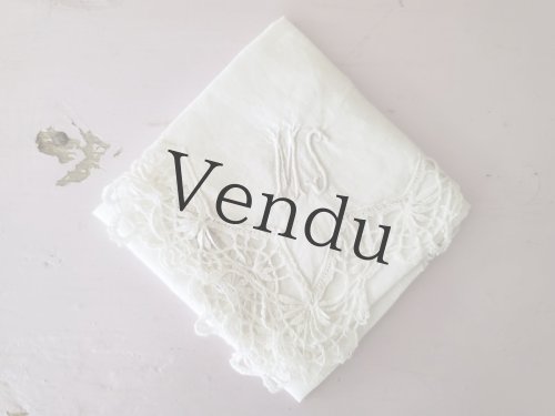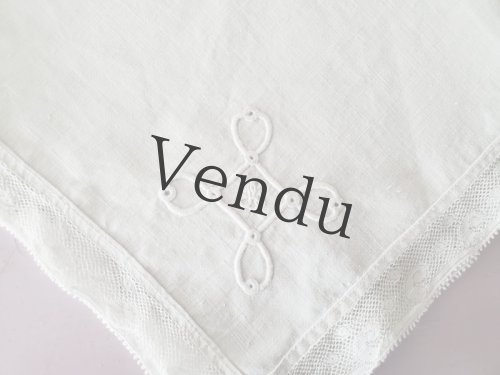 フランスヴィンテージ ボビンレースハンカチ イニシャル刺繍 GL