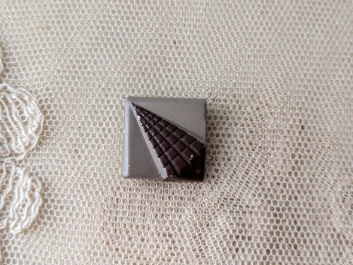 カゼイン(ガラリット)は扱いやすく染まりやすい素材なので、色を重ねたり流行っていた当時のアールデコを意識した幾何学模様のボタンなどが見られたりします。