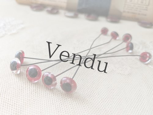 - > フランスヴィンテージ ガラスアイ 5本セット/赤12mm
