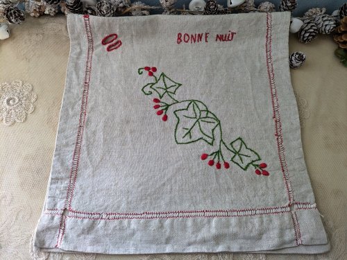 - > フランスヴィンテージ リネンのランジェリーサック Bonne Nuit