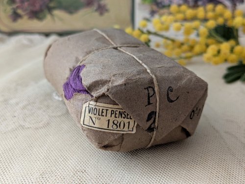 - > フランスアンティーク シルク紙製糸巻き SOIE D'ALGER A LA COQUILLE モーヴ