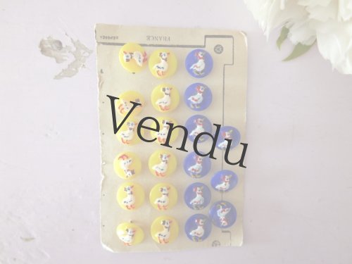 フランスアンティーク ガラリットボタン 黄色 21.5mm 2個セット