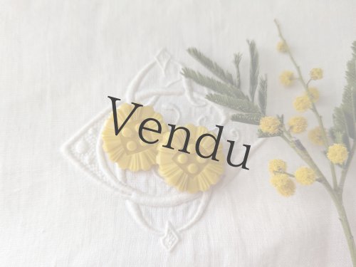- > フランスアンティーク ガラリットボタン 黄色 21.5mm 2個セット