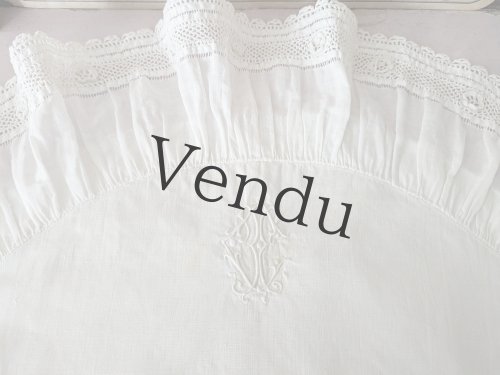 フランスヴィンテージ CHイニシャル刺繍入り リネンシーツ