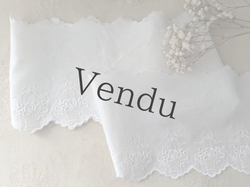 - > フランスヴィンテージ 刺繍スカラップレース 蝶 195cm
