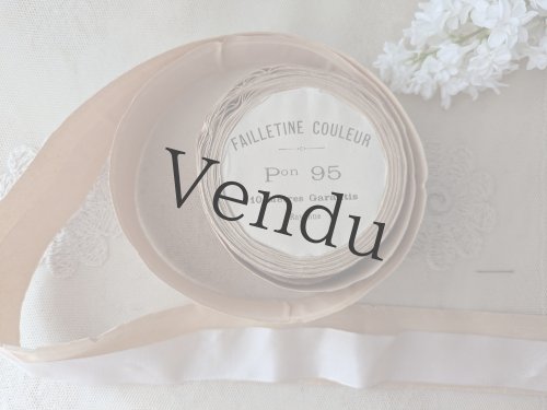 - > フランスアンティーク シルクロココリボン ピンク×モスグリーン