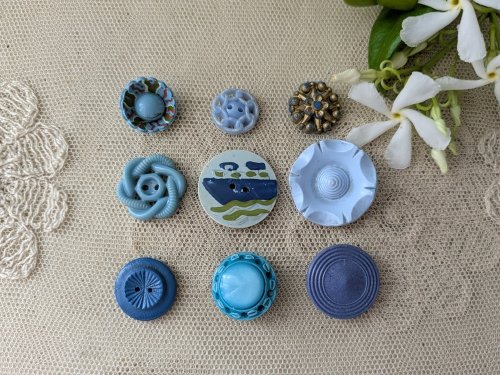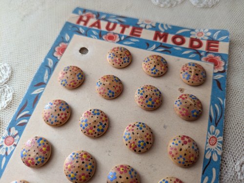 - > フランスヴィンテージ ハンドペイントウッドボタン ヨット 14mm