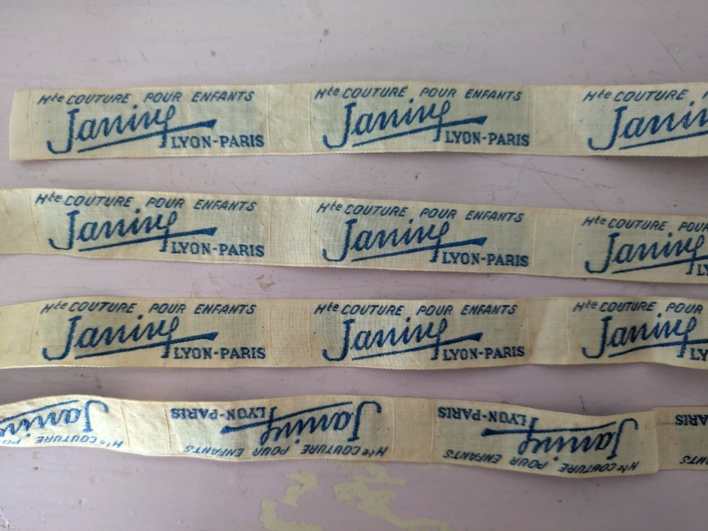 - > フランスヴィンテージ タグ 水色刺繍 10タグ〜