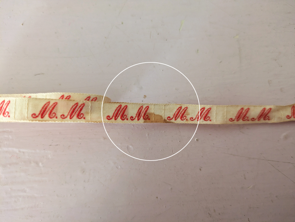 イニシャルテープは衣服や寝間着の裾などに縫いつけ使用されていました。