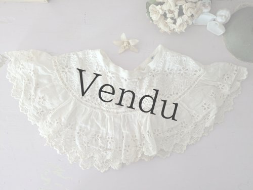 フランス 1900年前後 白糸刺繍の小さなつけ襟