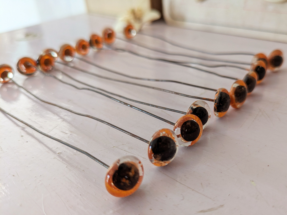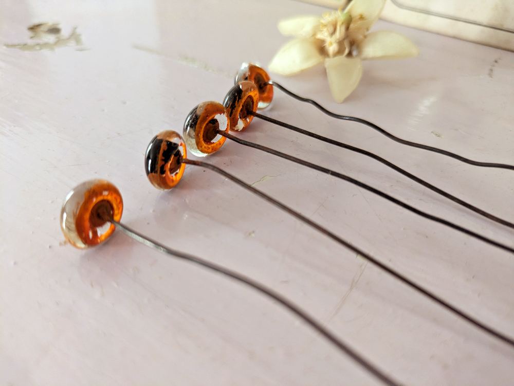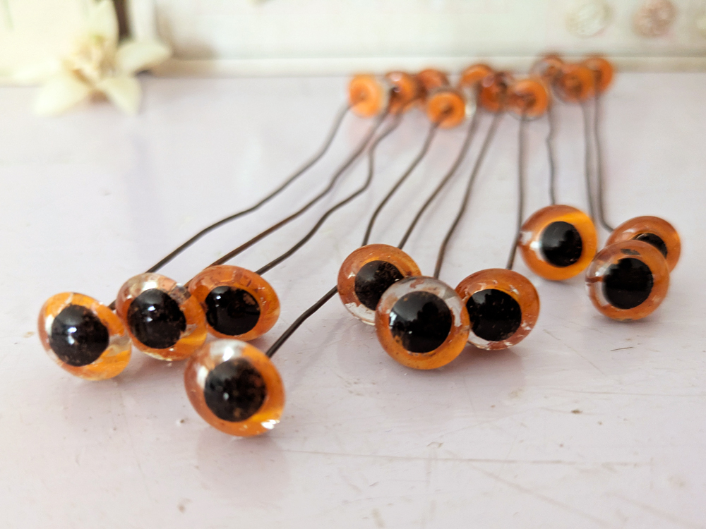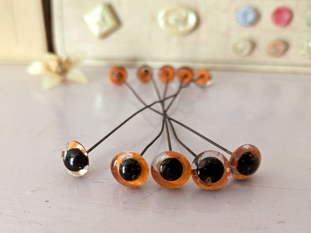 - > フランス 1930-50年頃 グラスアイ 5本セット/オレンジ12mm