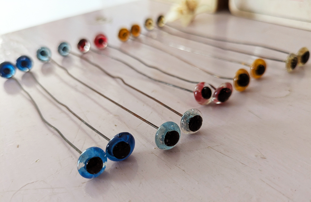 フランス 1930-50年頃 グラスアイ 10本セット/5色アソート10.5mm