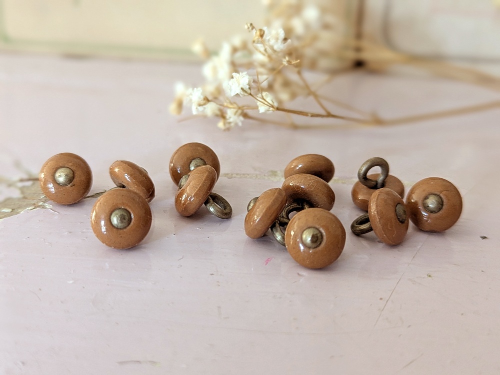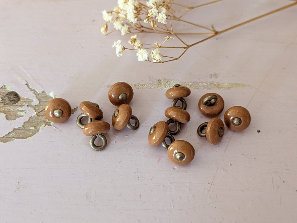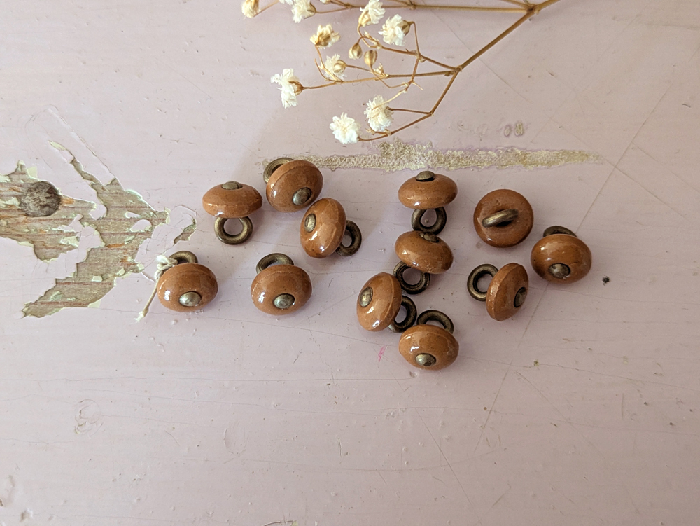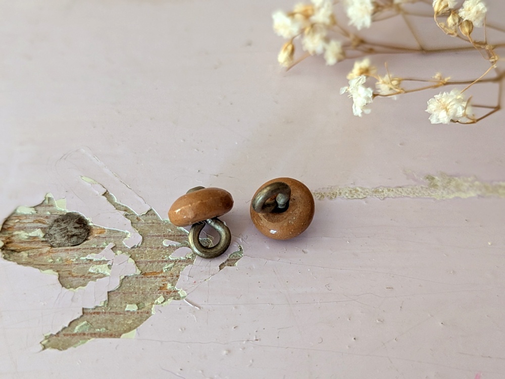 - > フランス 1900年前後 靴用ボタン/シュ―ボタン キャラメル 2個セット 9mm
