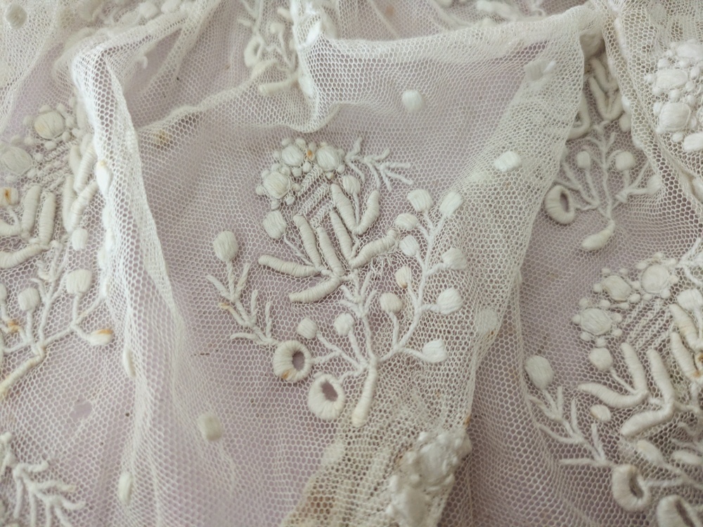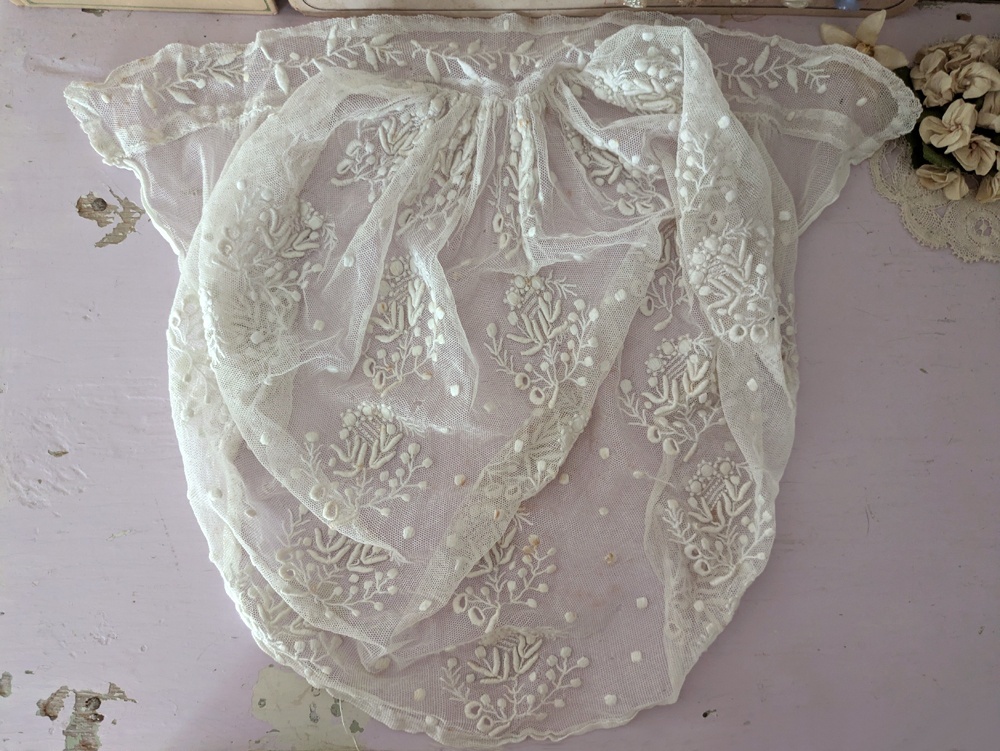 やわらかいチュール地に白糸刺繍がエレガントなボネです。
