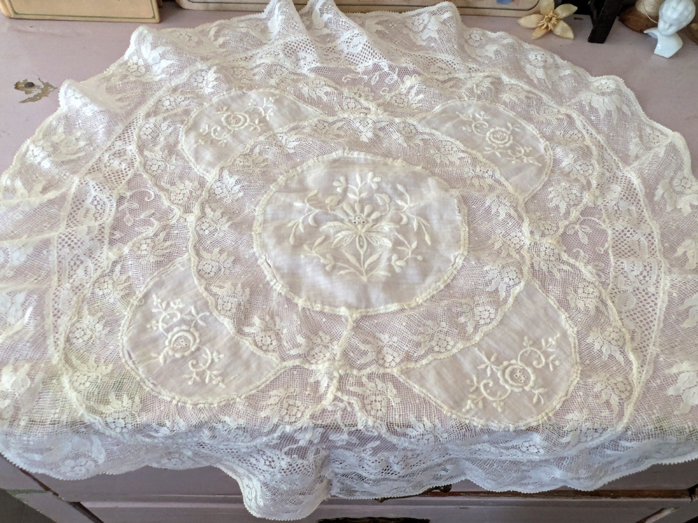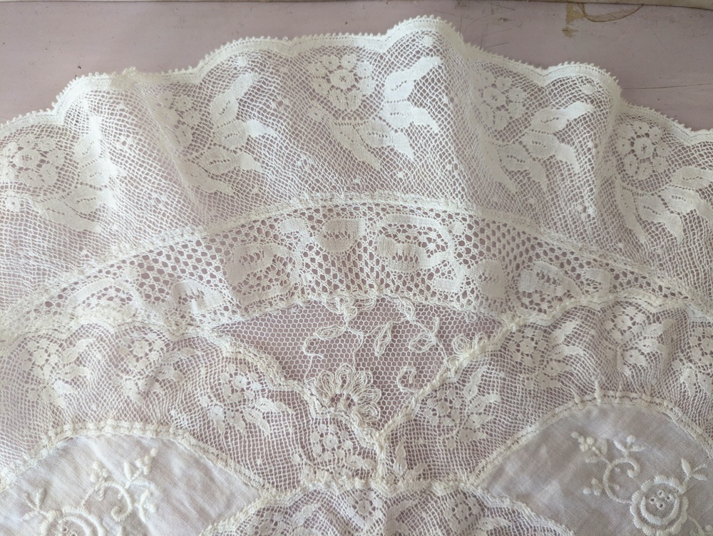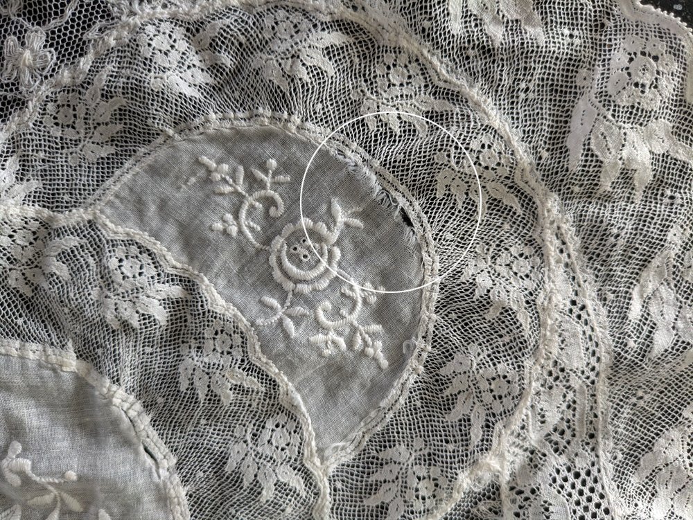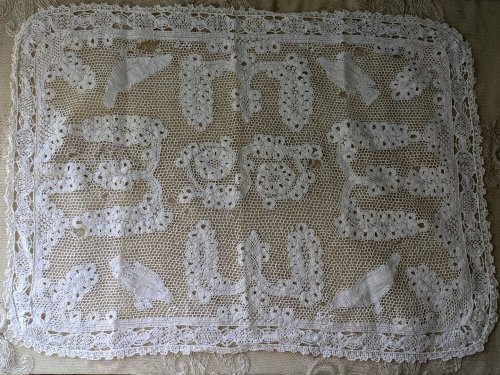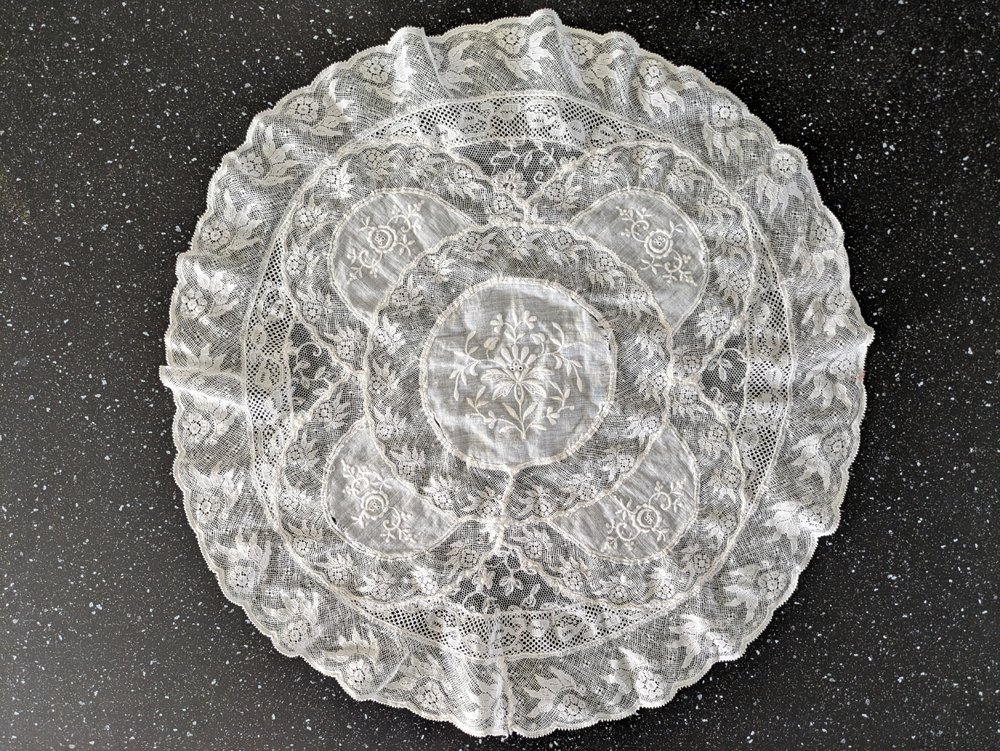 - > フランスアンティーク ノルマンディレースのドイリー 45×42cm