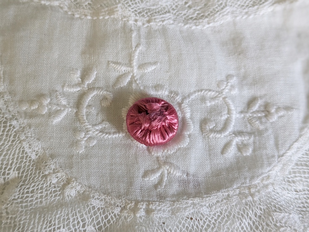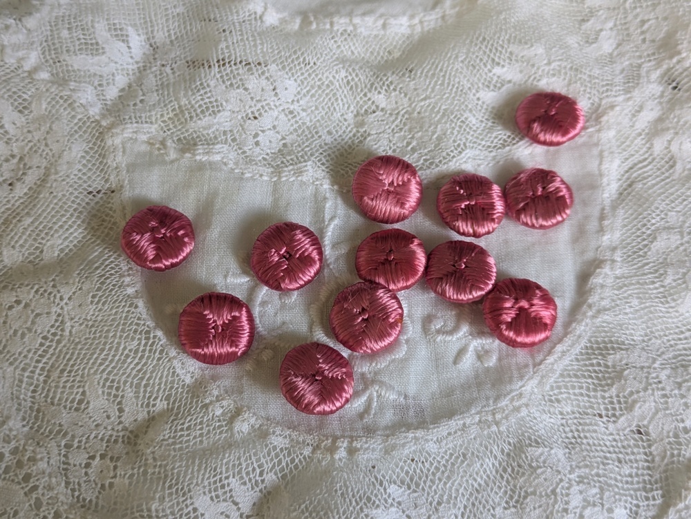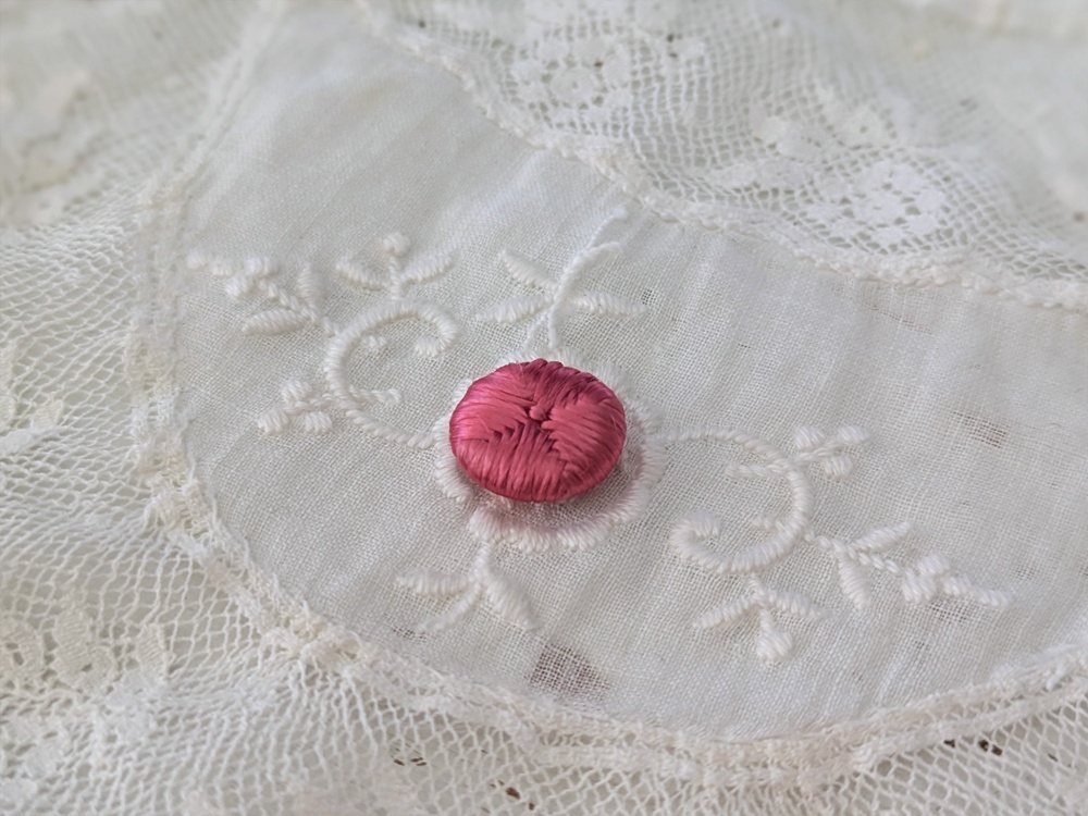 - > フランスアンティーク シルクくるみボタン ピンク13mm