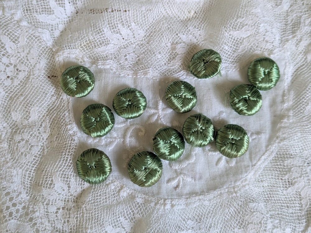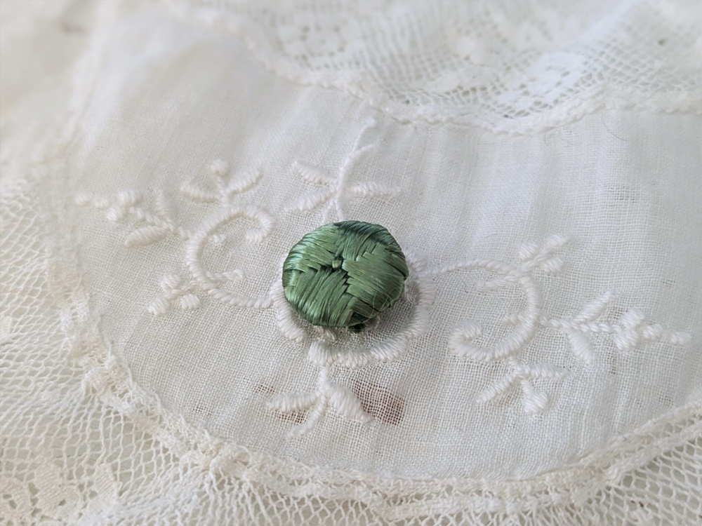 - > フランスアンティーク シルクくるみボタン ミント13mm