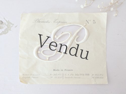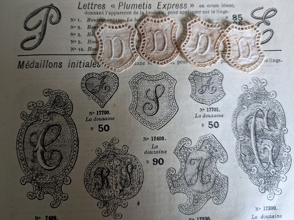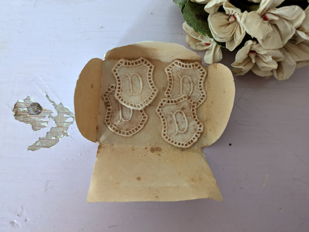 - > フランスアンティーク メダイヨン イニシャル刺繍「D」4枚セット
