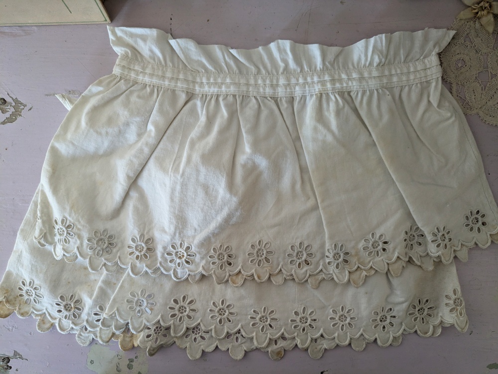 フランスアンティーク カットワーク刺繍のはぎれパーツ(キュロットの裾ペア)