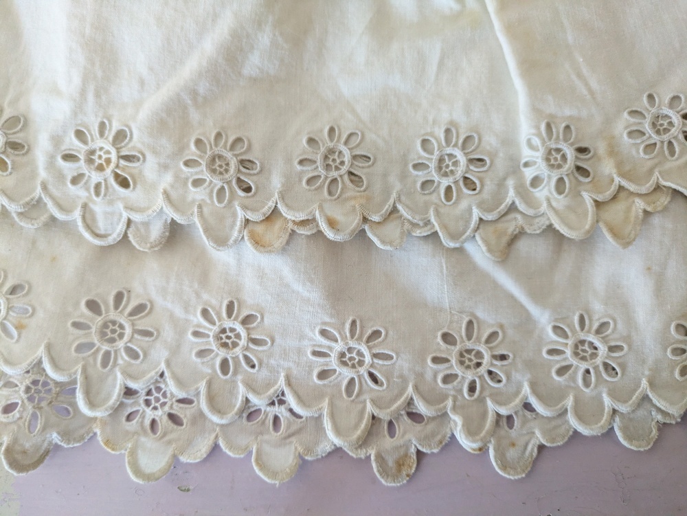 - > フランスアンティーク カットワーク刺繍のはぎれパーツ(キュロットの裾ペア)