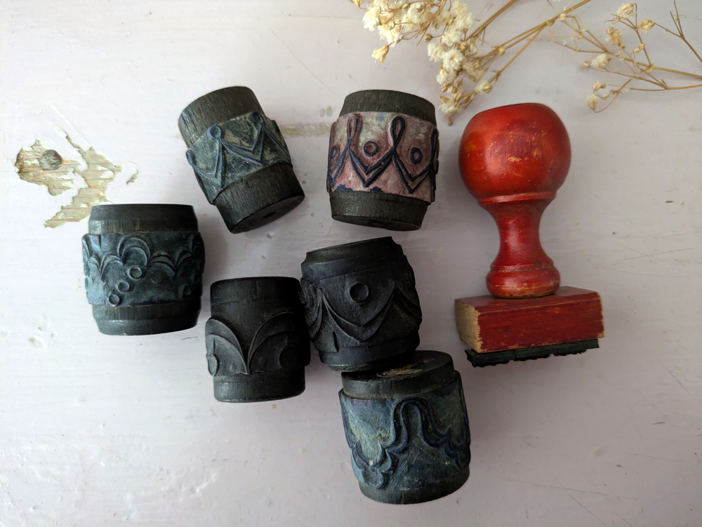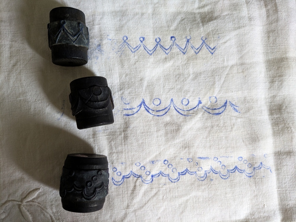 ころころ、刺繍のマーキングに使用されていた木製ローラースタンプ3個セットです。