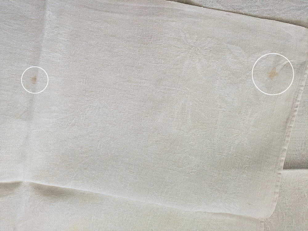 経年により所々に薄い茶色いシミ、黄ばみ、グレーの汚れがあります。