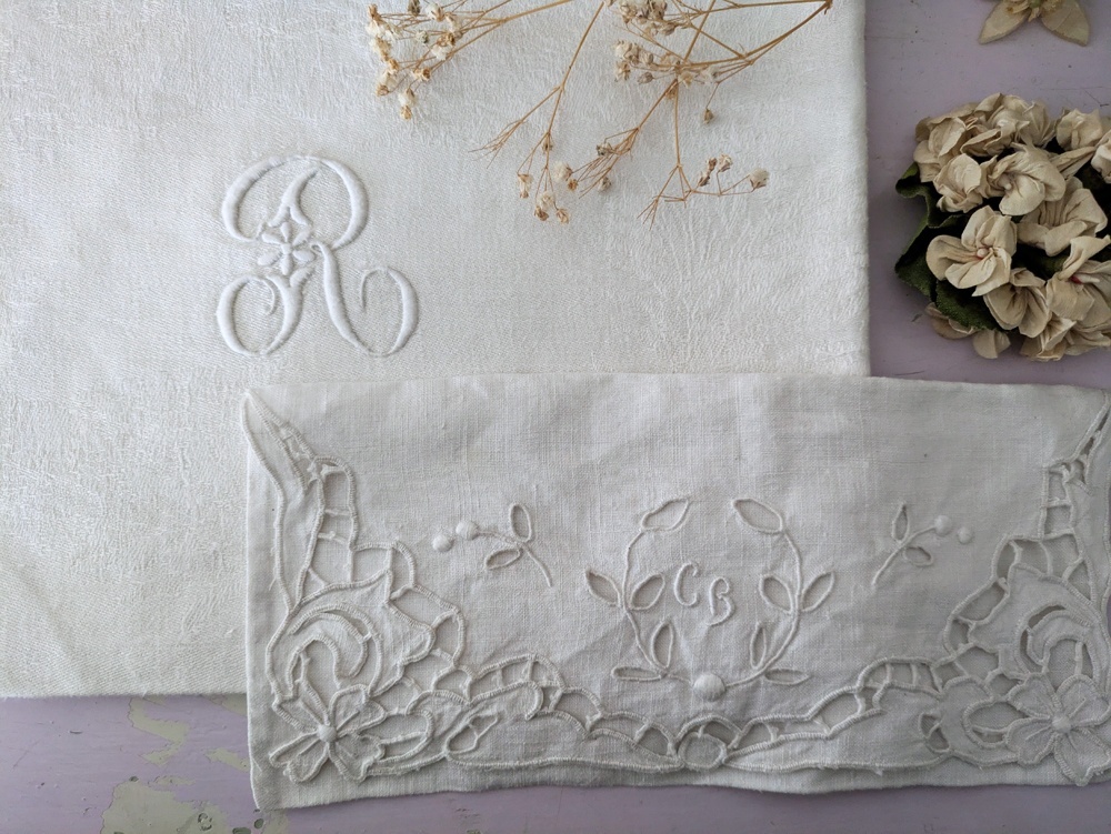 今から100年ほど前の時代ではイニシャルの刺繍入りリネンは嫁入り道具のひとつでした。