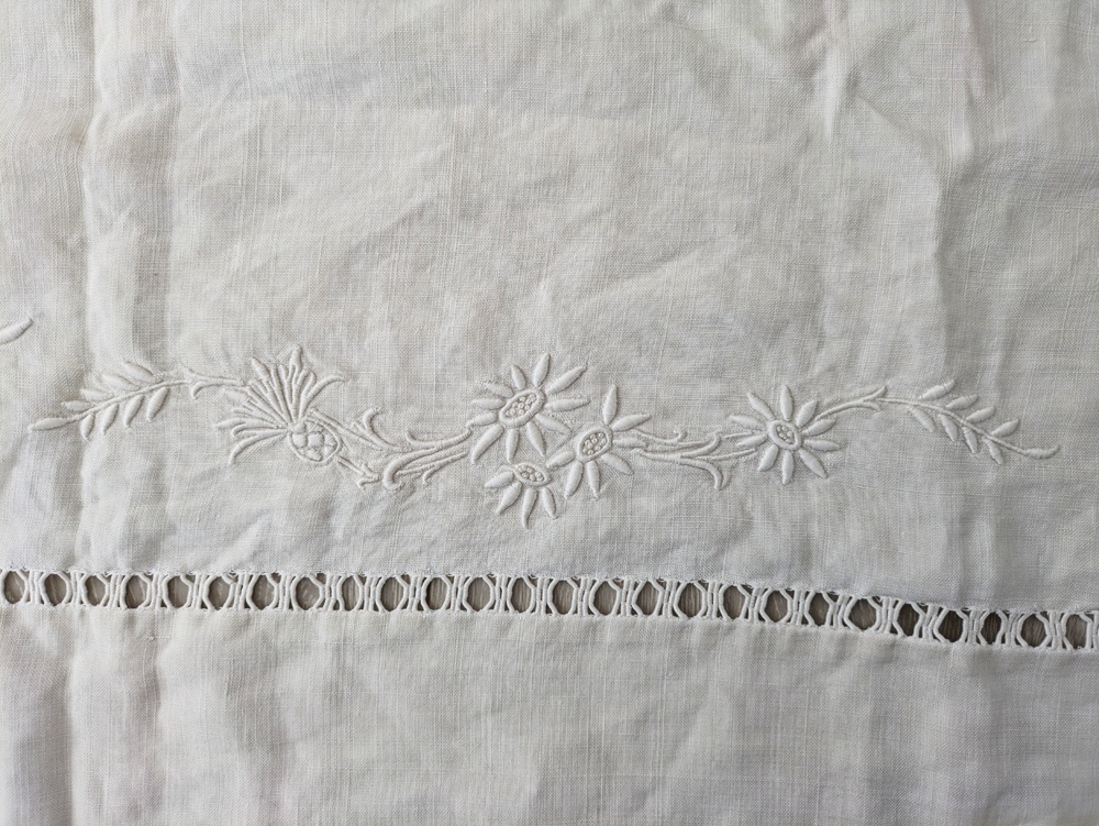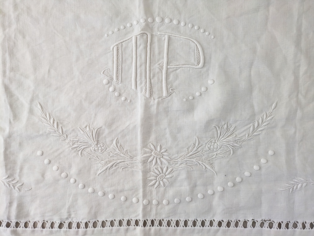 今から100年ほど前の時代ではイニシャルの刺繍入りリネンは嫁入り道具のひとつでした。