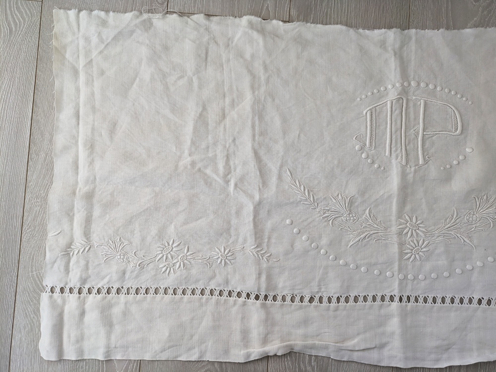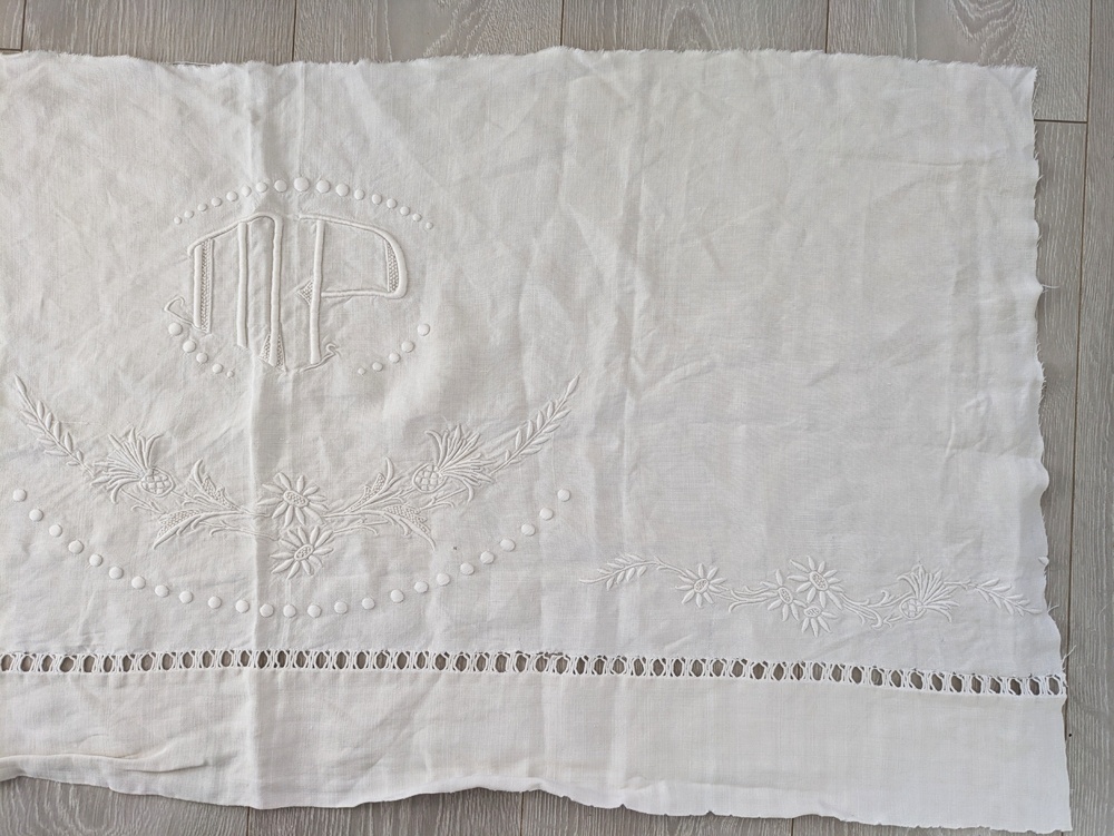 フランスアンティーク イニシャルモノグラムMP刺繍 大判はぎれ