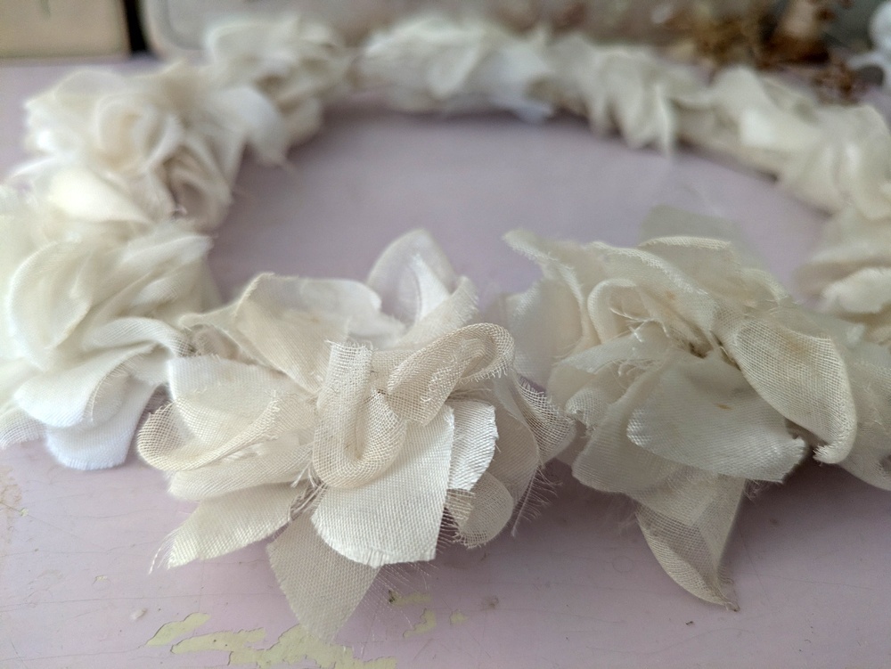 こちらはサイズ感からコミュニオンでベールと一緒に身に着けられていたリースのようです。
