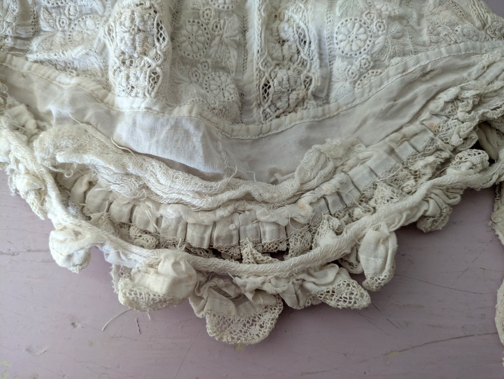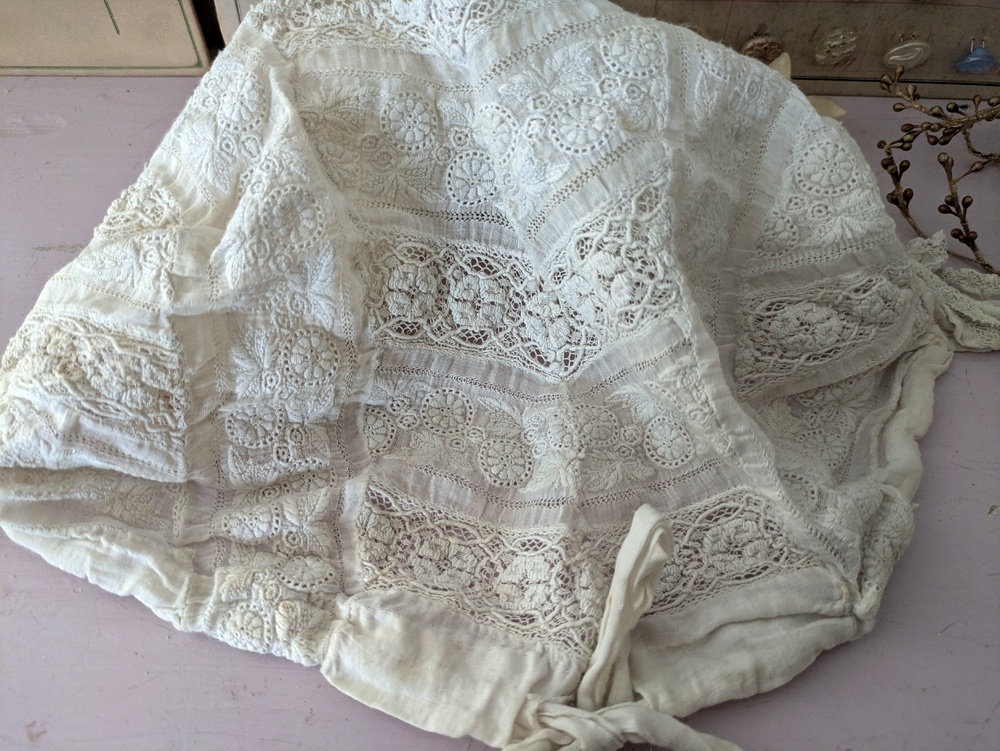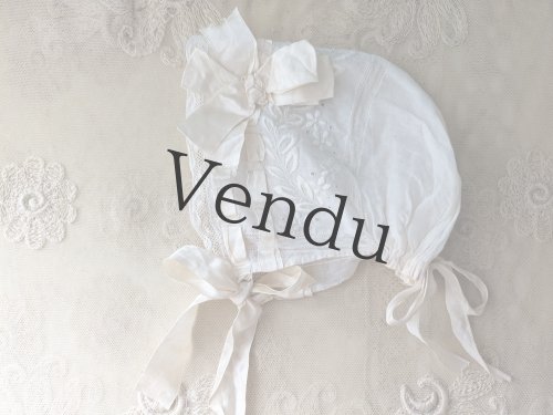 - > フランス 1900年前後 白糸刺繍のボネ
