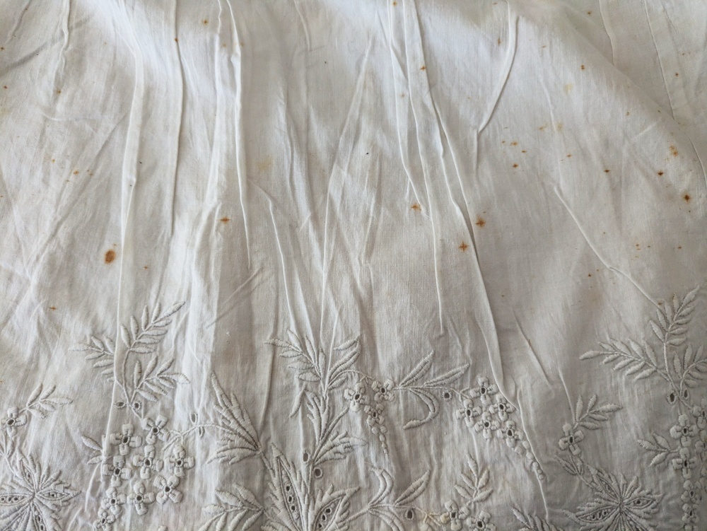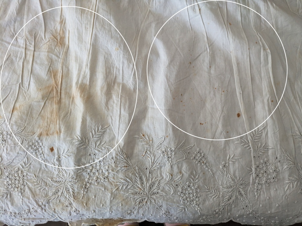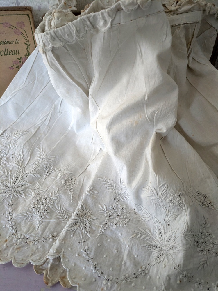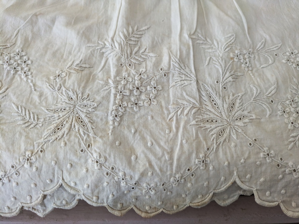 フランスアンティーク 白糸刺繍ジュポンの裾 円形状168cm